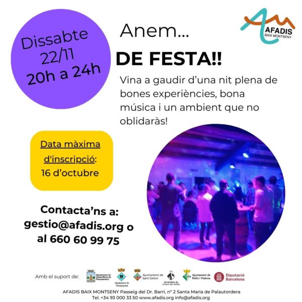 Les dades de caràcter personal que ens proporcions seran tractades per Afadis, en la seva qualitat de responsable de l’tractament de dades. La finalitat de l’tractament és contactar amb tu per respondre a les qüestions que ens plantegis al formulari de contacte. La legitimació de l’tractament es realitza amb el teu consentiment. No cedirem les teves dades a tercers sense el teu consentiment previ. Pots exercir els teus drets d’accés, rectificació, limitació, supressió i portabilitat de dades escrivint a info@afadis.org. També tens dret a presentar una reclamació davant l’Agència Espanyola de Protecció de Dades.